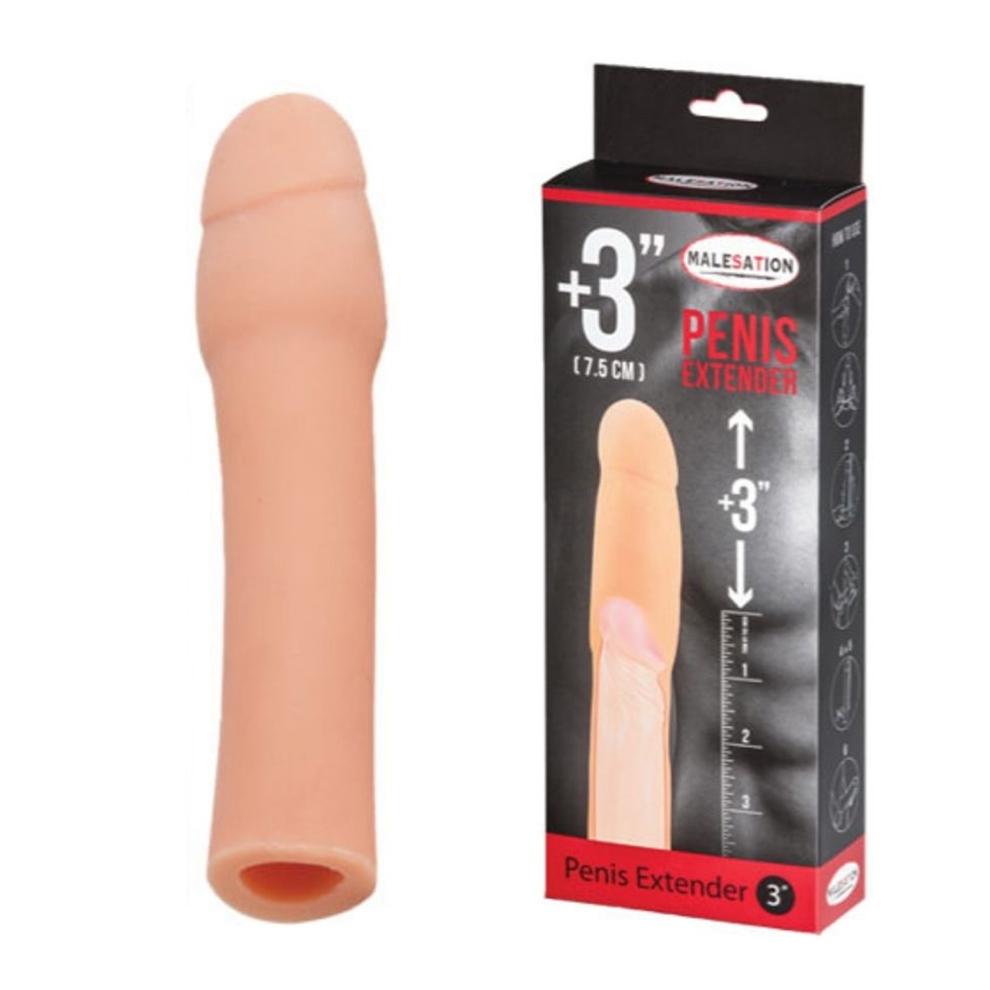Add instant length and girth to your penis with the 3” penis extender by Malesation. Malesation Penis Extender Sleeve Set 3 Inch has been designed to provide you with a length that looks and feel more like a realistic penis. This Malesation Penis Sleeve is smooth, super soft and is seamless and provides you with an extra 3 inches on your size.